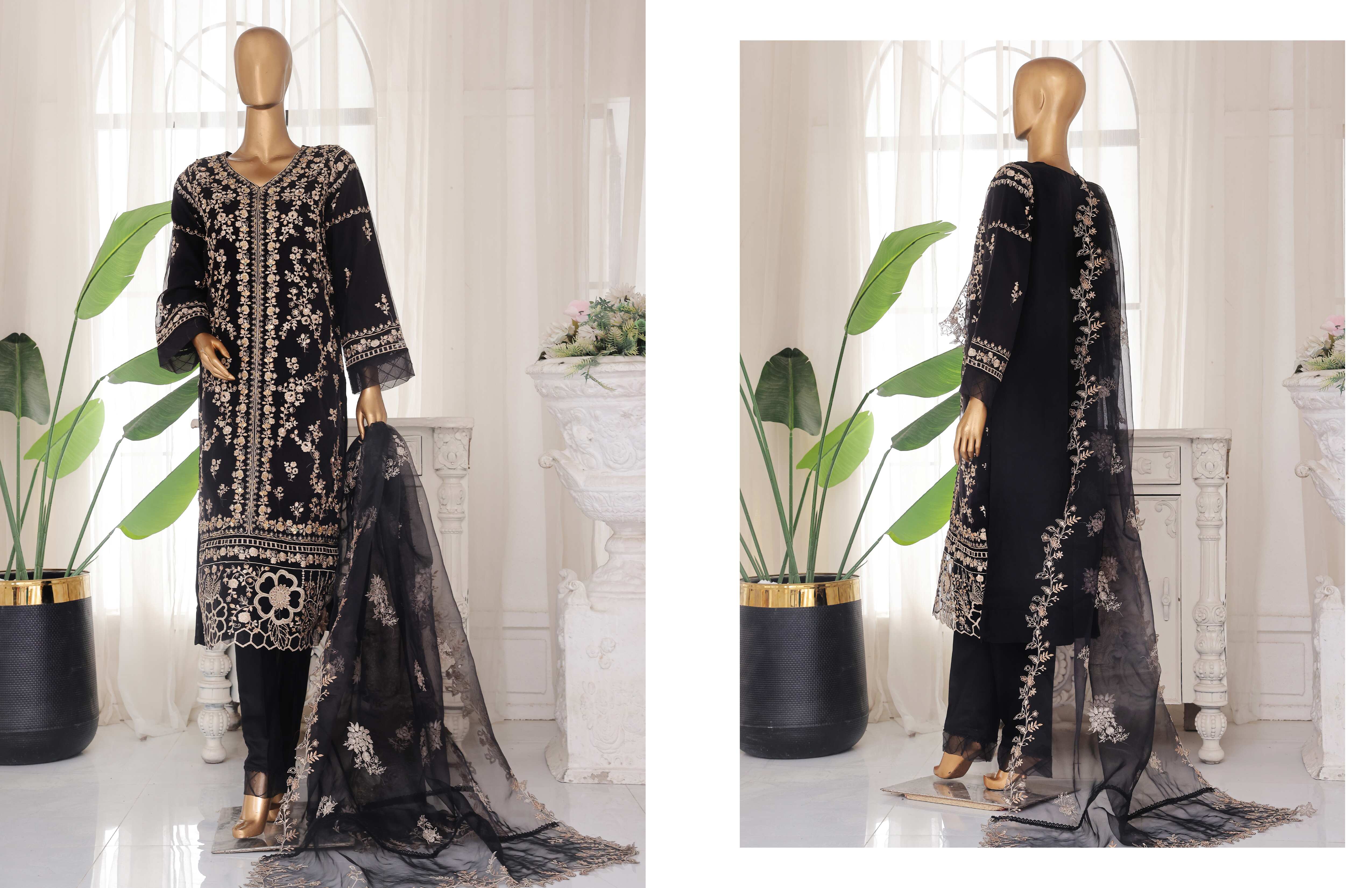 Embroidered Chiffon Shirt Embroidered Chiffon Dupatta Raw Silk Trouser