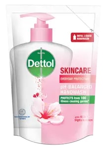 Keep your hands hygienically clean, soft, and cared for with the Dettol Handwash Skincare Liquid Refill 170 ml. This economical refill pack is designed to replenish your Dettol Skincare pump bottle, offering a convenient and eco-friendly way to maintain superior hand hygiene in your home or office.Dettol Skincare Handwash is specially formulated to provide 100% better germ protection compared to ordinary non-antibacterial hand washes, effectively washing away a wide range of unseen, illness-causing germs and bacteria. It features a pleasant, fresh fragrance that invigorates your senses without being overpowering.With its pH-balanced formula, this hand wash gently cleanses your hands without stripping their natural moisture. It contains added moisturizers, including glycerin, which helps to maintain your skin's natural hydration, preventing dryness and ensuring your hands feel soft and supple even with frequent washing. Dermatologically tested, it's gentle enough for daily and repeated use by the entire family.By choosing the refill pack, you not only get the trusted Dettol protection but also contribute to reducing plastic waste, making it a smart choice for both your family's health and the environment.Key Features:Trusted Germ Protection: Provides 99.9% protection against a wide range of illness-causing germs and bacteria.Gentle & Moisturizing: Formulated with added moisturizers to keep hands soft and prevent dryness, even with frequent washing.Economical Refill: Cost-effective way to replenish your Dettol Handwash Skincare pump bottle.Eco-Friendly Choice: Helps reduce plastic waste compared to buying new pump bottles.pH-Balanced Formula: Maintains your skin's natural moisture barrier, suitable for daily and repeated use.Dermatologically Tested: Confirmed safe for daily use by the entire family.Fresh & Subtle Fragrance: Leaves your hands with a pleasant, clean scent.Usage Direction:Cut the refill pack along the given line and carefully pour the Dettol Handwash Skincare Liquid into an empty Dettol Liquid Handwash dispenser. Press the nozzle to get a small amount of liquid handwash on wet hands. Rub hands together thoroughly for at least 20 seconds, ensuring complete coverage with lather, then rinse well with water and dry off.Safety Information:For external use only.Keep out of reach of children unless under adult supervision.Avoid contact with eyes. In case of contact with eyes, rinse immediately with plenty of water.If persistent irritation occurs, get medical attention.Store in a cool and dry place.Maintain superior hand hygiene with the trusted, gentle, and caring power of Dettol Handwash Skincare Liquid Refill 170 ml!