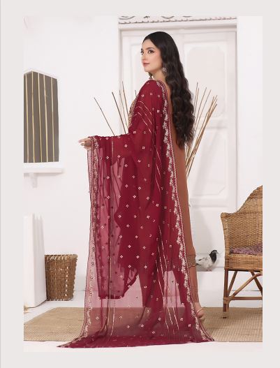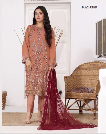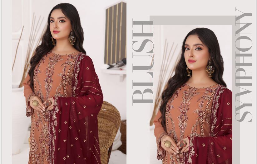 Luxury chiffon collection having heavy embroidered shirt and dupatta with decent hand work to create an everlasting impression on coming festivities!✨