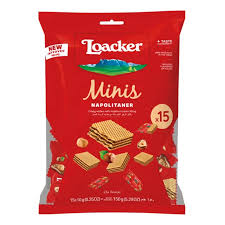 Loacker Minis Napolitaner Wafer 150gm features a collection of individually wrapped mini wafers, each filled with rich hazelnut cream made from 100% Italian hazelnuts. These crispy and creamy treats are perfect for sharing, packing in lunch boxes, or enjoying on the go. Made with natural ingredients and no artificial additives, Loacker Minis deliver premium quality and taste in every bite-sized portion.