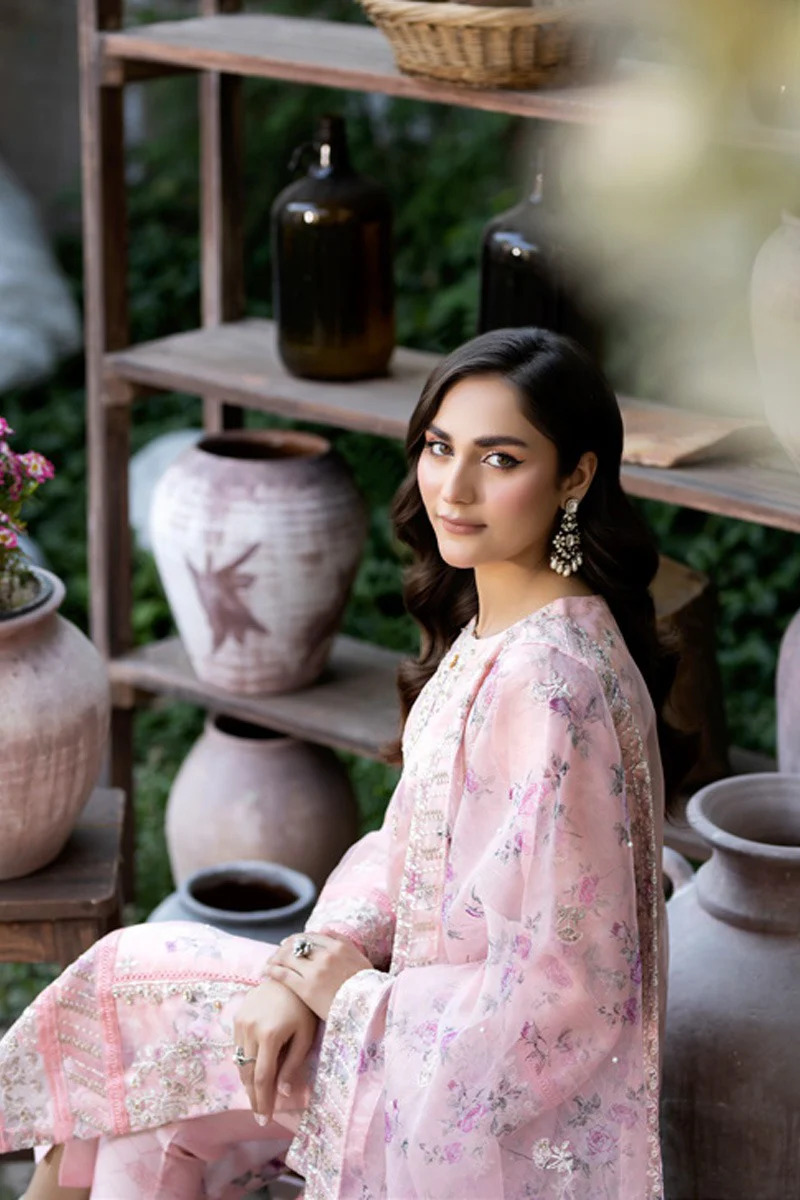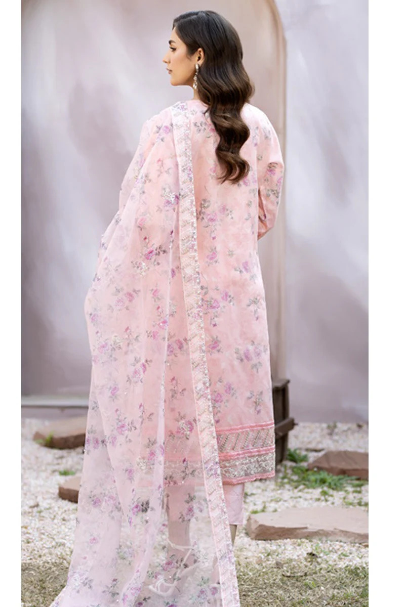 Mahiye Organza Fancy Semi Stitch by Noors. Semi- Stitched Fancy Heavy Embroidered Organza Fabric For Shirt with embellishments & Digital Printed Inner Fancy Embroidered Organza Dupatta Viscose Jacquard fabric for Trouser/ shalwar Fancy Complimentary Clutch included