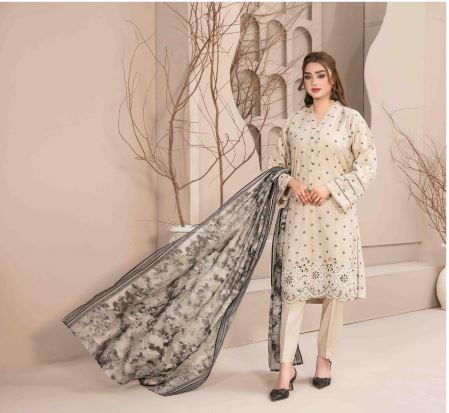 Mismah stitched by Tawakkal embroidered lawn borsha digital printed dupatta. 3 Piece Stitched Collection By Tawakkal Fabrics, Attractive & Elegant Embroidered Broshia Banarsi Lawn Collection comes with: Stitched Embroidered Broshia Banarsi Lawn Shirt Designs with Embellishments Exclusive Digital Printed Slab Dupatta Stitched Plain Cotton Trouser In 3 different sizes (Small, Medium & Large)