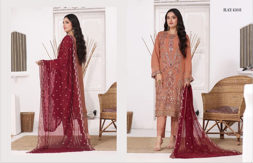 Luxury chiffon collection having heavy embroidered shirt and dupatta with decent hand work to create an everlasting impression on coming festivities!✨